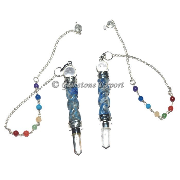 Buy Gemstone Export supplier and wholesaler of 7 chakra pendulums, Seven Chakra Stone. Buy now Lapis Lazuli Twisted Spiral 7 Chakra Pendulum. For customs design kindly contact us.