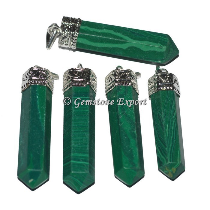 Gemstone Export supplier and wholesaler of all kinds of pencil pendants, healing crystals pendants Light weight with more power pendants. Buy now Malachite Cap Pencil Pendants