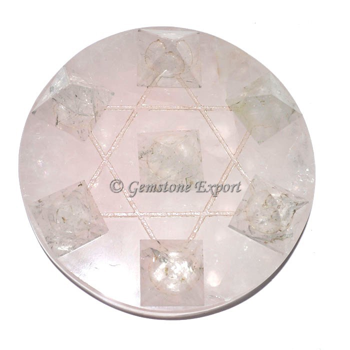 Rose Quartz with Crystal Quartz Pyramids Pentagram star, Buy Reiki Products. Buy online metaphysical new age crystals from gemstone export.. For customs logo or desing contact to us..