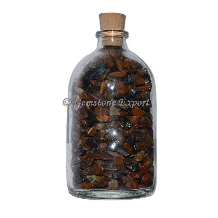 We offer wholesale Tiger Eye Big Size Gems Bottles, a solid choice for retailers looking to stock distinctive gemstone items. Each bottle, roughly 2 inches tall and weighing between 40-70 grams, is filled with genuine Tiger Eye chips. This natural stone is well-regarded for its distinctive chatoyancy and warm, earthy tones, making these bottles an appealing addition to any collection or retail display. They serve as simple decorative pieces or as containers for small intentions.